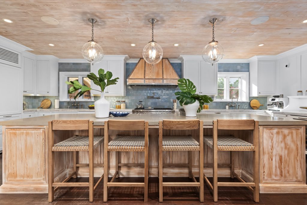 Gourmet eat-in kitchen with large island and top-of-the-line appliances leads to formal dining room. Adjacent breakfast room features arched French doors with views of the garden. Formal living room with gorgeous, beamed ceilings and fireplace. Expansive Primary Wing complete with office, dressing area, large bath with dual sinks, and multiple fireplaces. Numerous spacious guest suites with en-suite bathrooms.