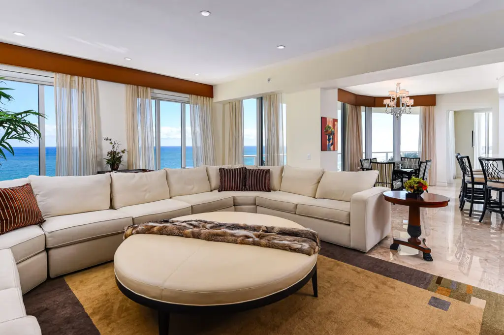 Gorgeous Oceanfront Ritz Carlton Tower Suite with over 9,000 total square feet, 4BR/5.1BA, and spectacular Ocean views from all main rooms. Private elevator welcomes you to foyer and gallery leading directly to the Oceanfront great room. Highlights include gourmet chef’s eat-in kitchen with top-of-the-line appliances, formal dining room, library, high ceilings, and rich finishes throughout. Expansive master wing with dual bathrooms and walk-in closets along with sitting room with wet bar. With dual covered balconies, this stunning unit offers commanding views of both the Intracoastal and the Atlantic Ocean. Full service building with full-time manager, doorman, 24-hour concierge, screening room, exercise facility, and beautiful resort style pool area.